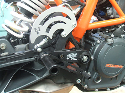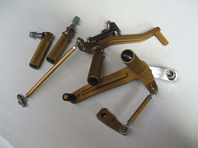 Constructed using 10mm 5083 H32 Ultimate Tensile MPa 317 alloy, boasting a two-tone colour scheme, needle roller pivots (super slick gear changes!) and a choice of 8 foot peg positions (22mm via eccentric).